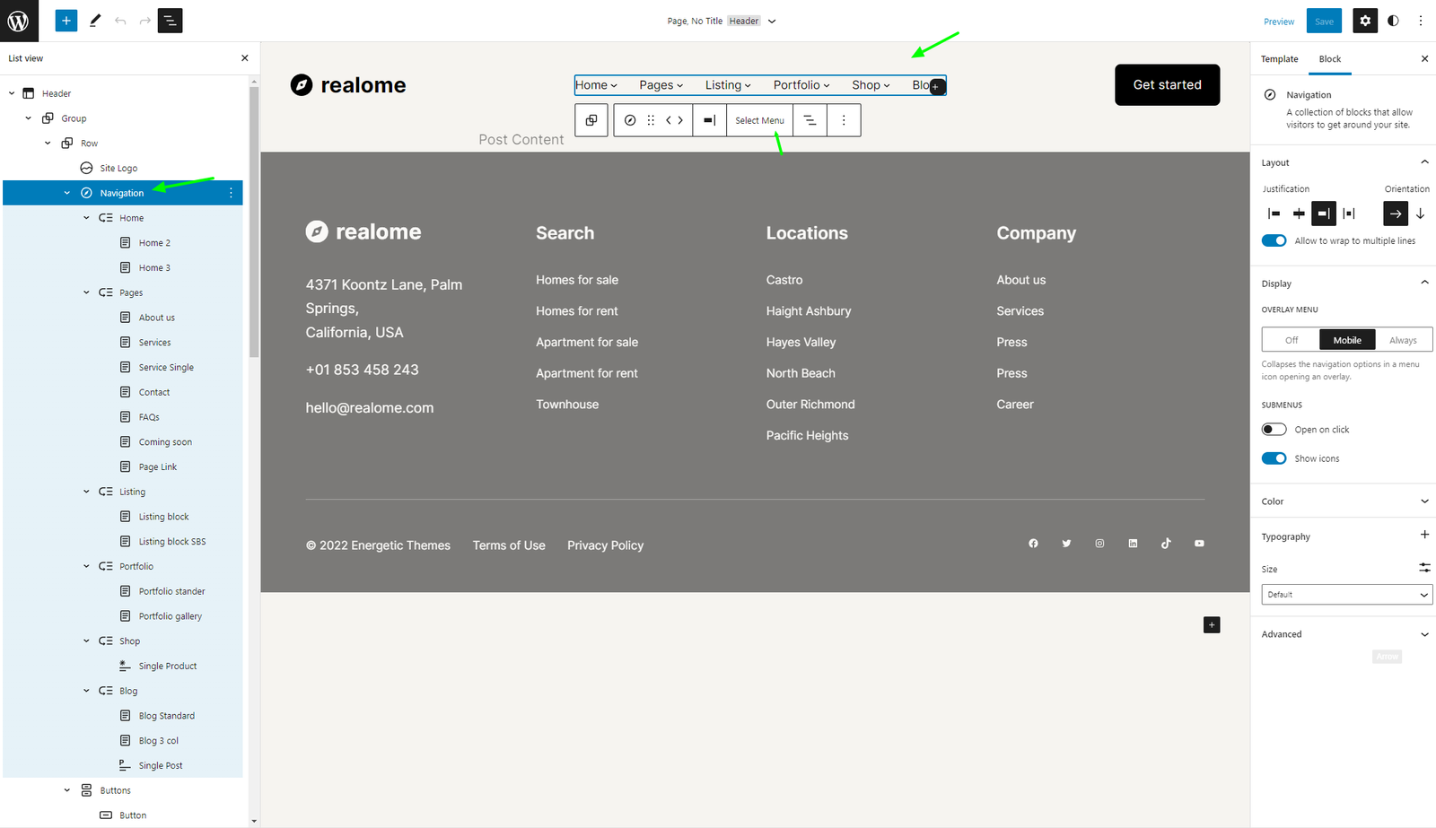 One of the first things you might want to do after you have installed and activated your theme is to set up your header area. The header contains the logo, navigation, search bar, and other optional blocks.