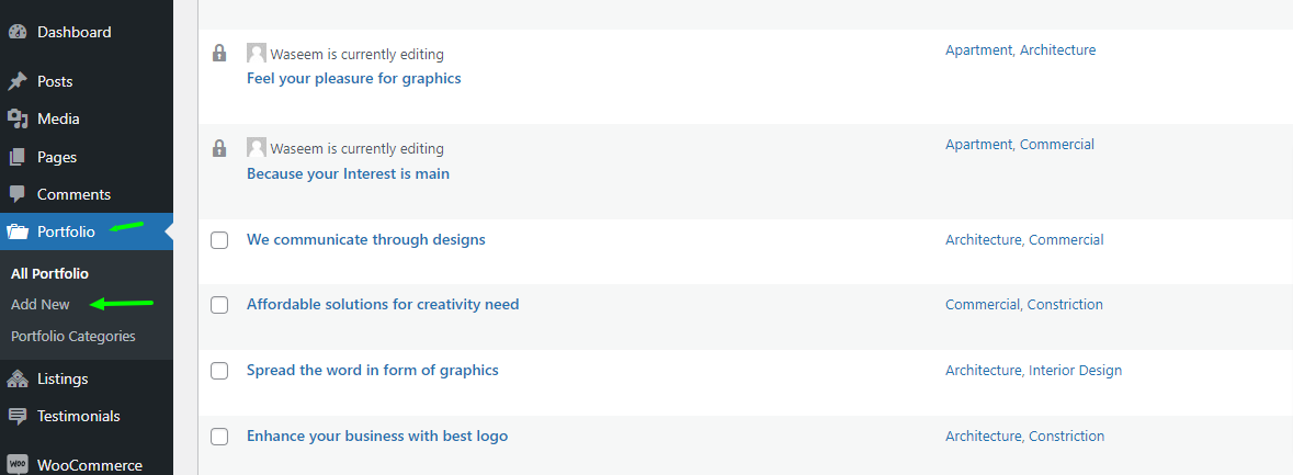 - Navigate to Portfolio > Add New from your WordPress admin panel.